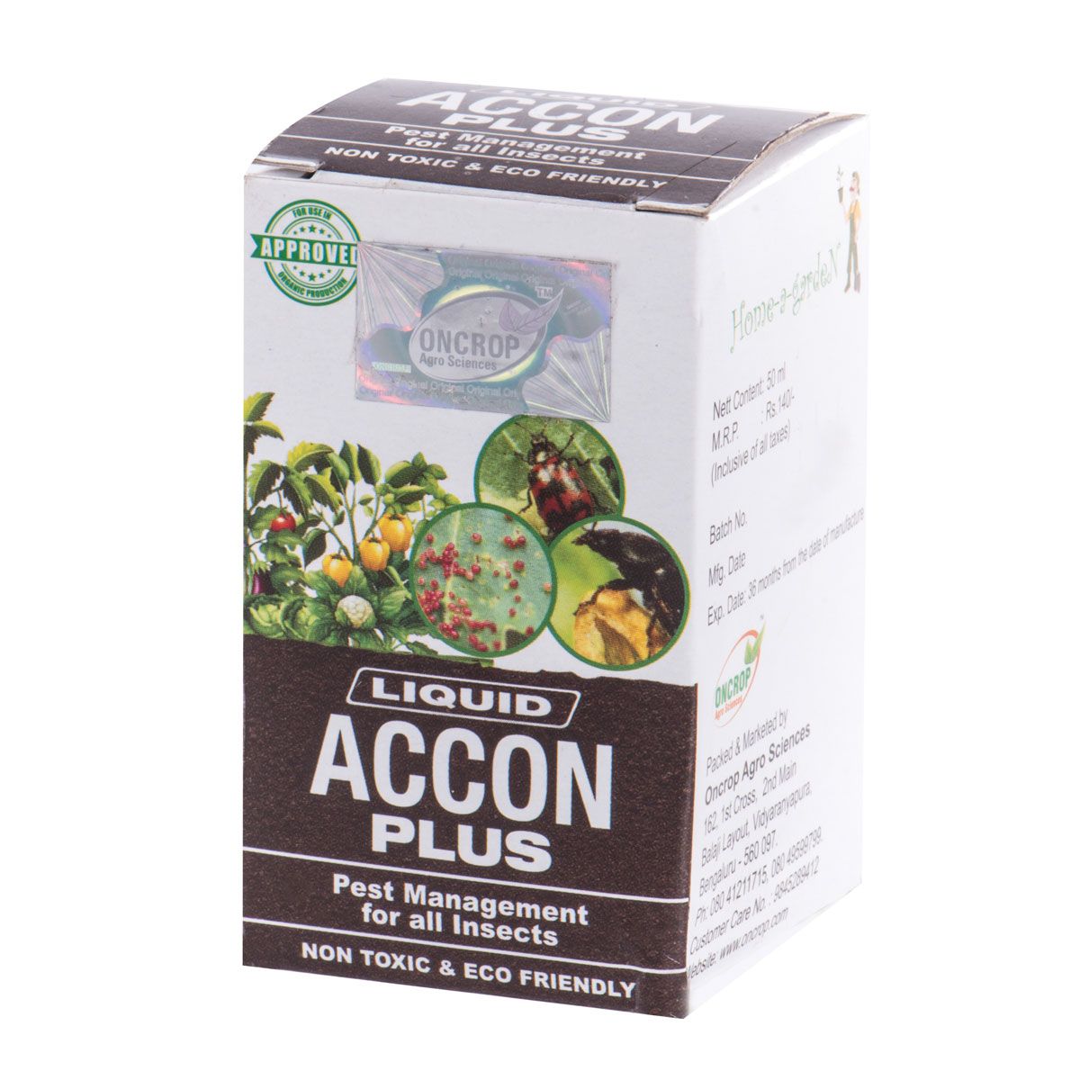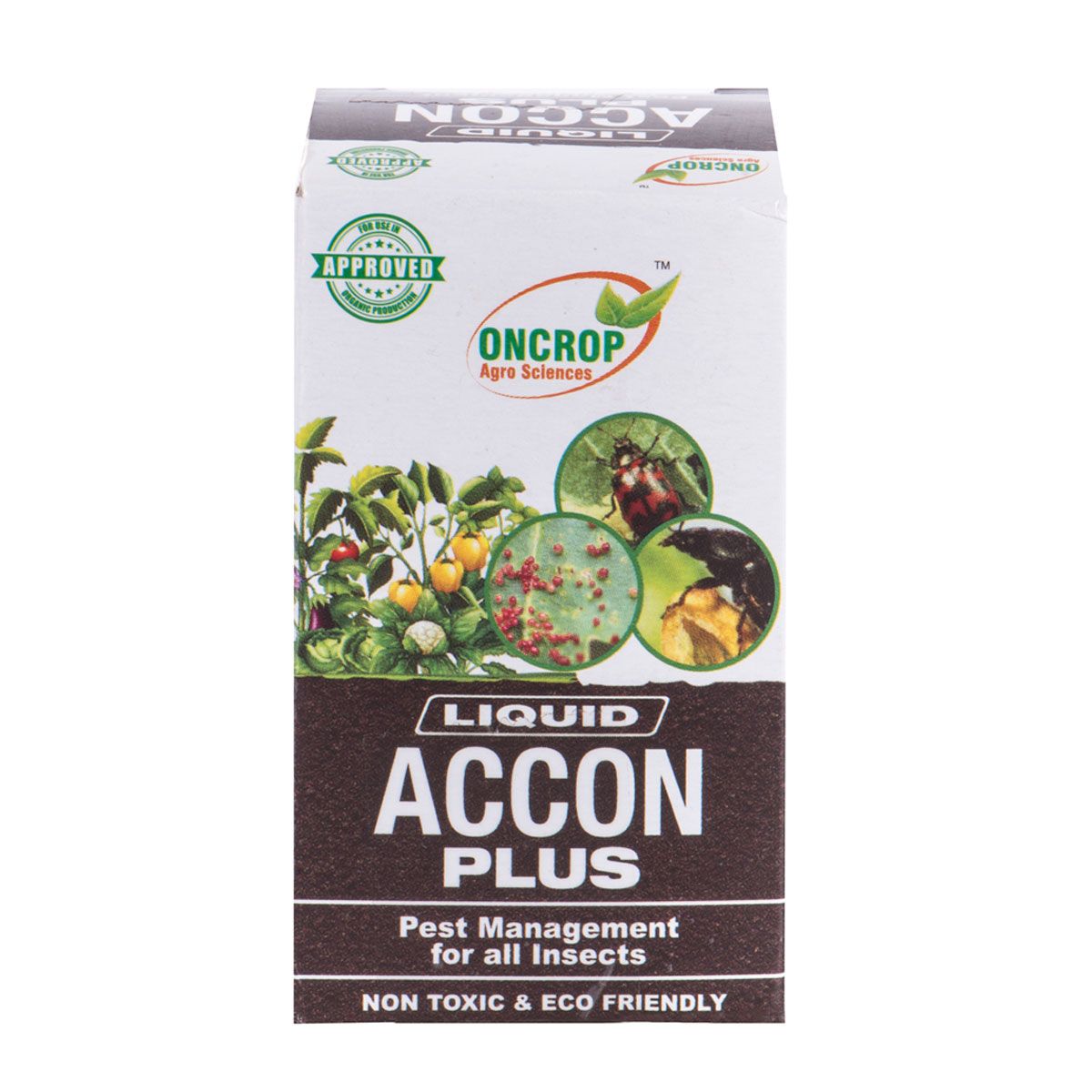 - ACCON PLUS is an eco-friendly, Non-toxic organic medicine for Pest management that provides excellent protection to the plants against sucking, chewing and biting insects.